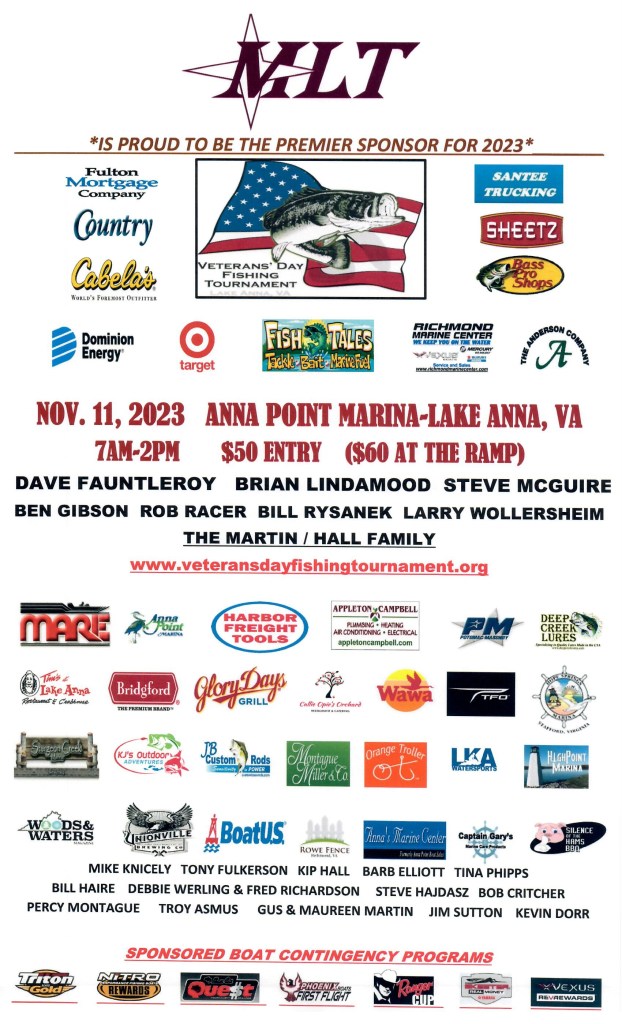 A competitive bass fishing team tournament for All Veterans and their supporters. Held every Veterans Day on Lake Anna, Virginia.