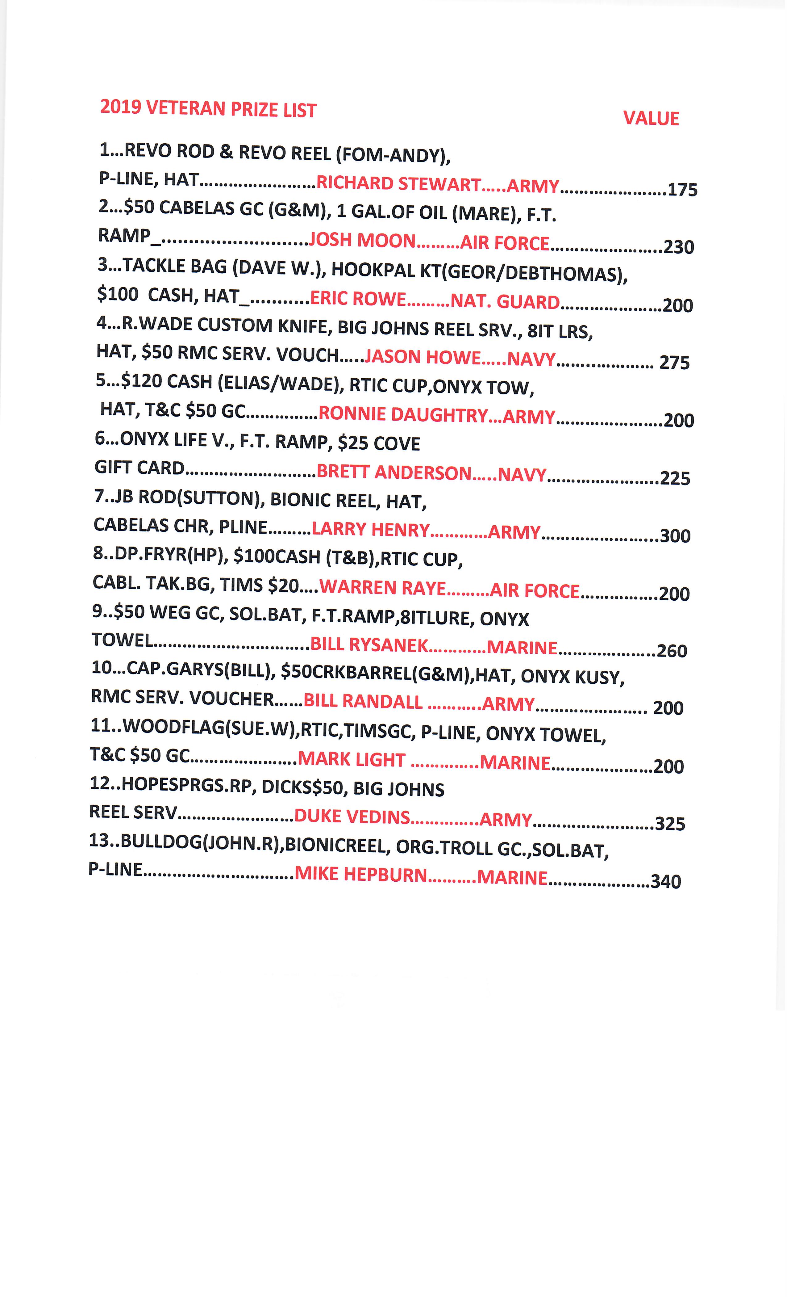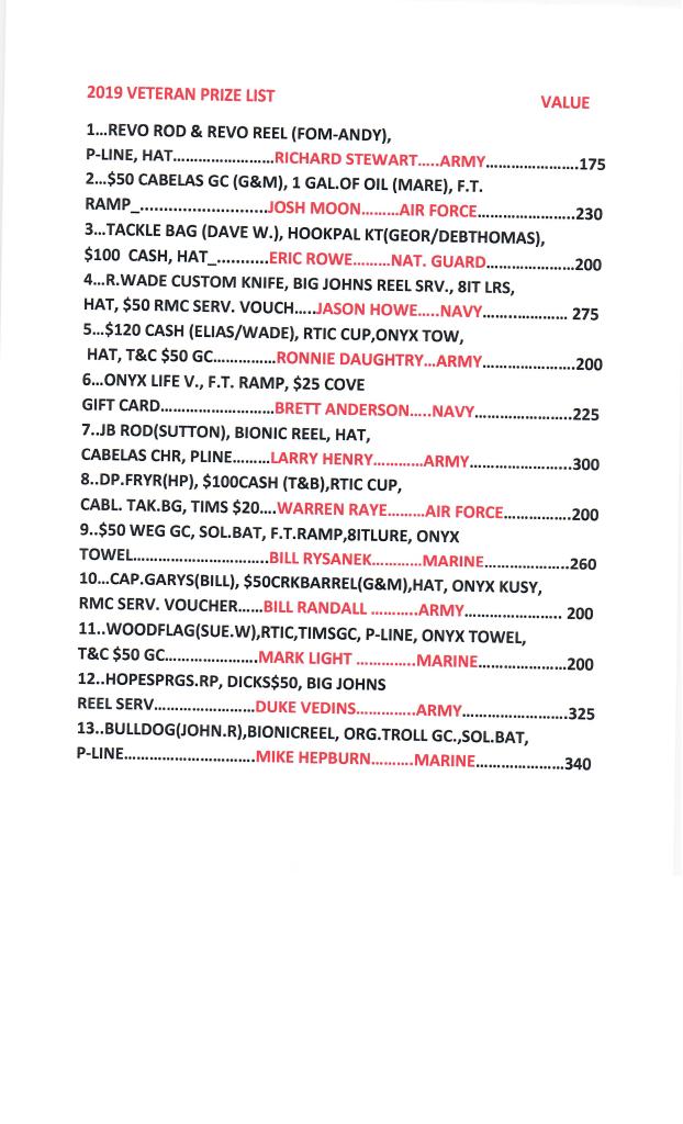 VETERANS DAY FISHING TOURNAMENT